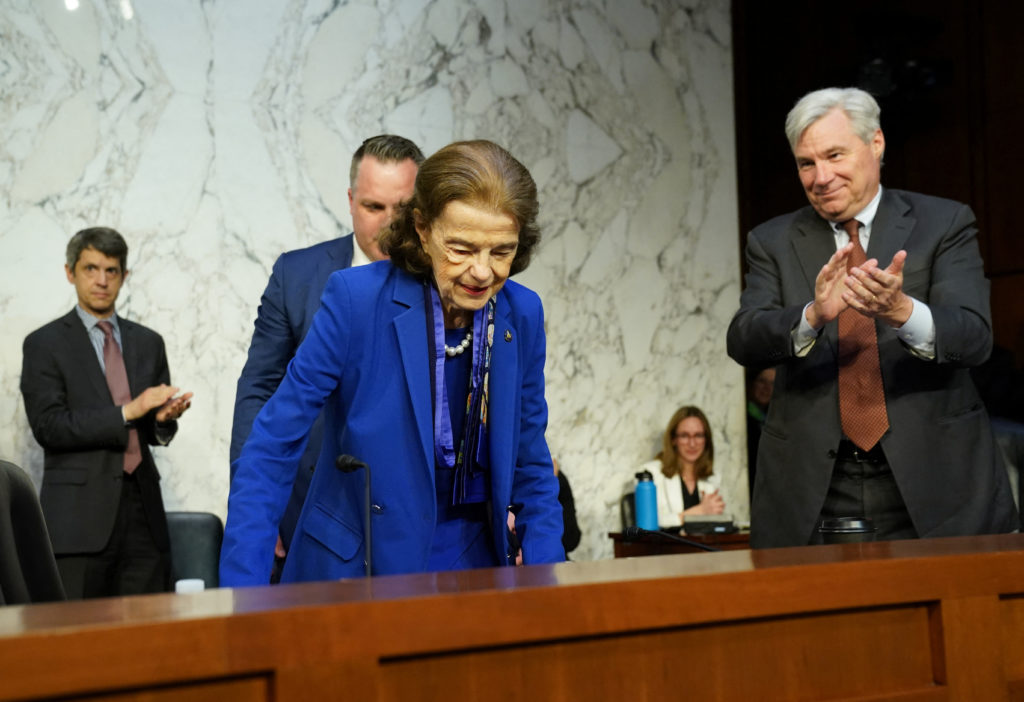 At the Judiciary meeting Thursday, she arrived in a wheelchair but walked to her seat on the dais, receiving a standing ovation. Senate Judiciary Committee Chairman Dick Durbin, D-Ill., said he spoke for all of them “with feelings of relief and support for our colleague Senator Feinstein.”